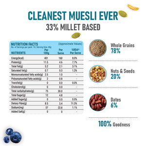 What sets Pintola MUESLI apart is its dedication to being gluten-free and wheat-free, making it an excellent choice for individuals with gluten sensitivities or celiac disease. With a focus on wholesome ingredients, this muesli is made with 74% whole grains, ensuring you get the essential nutrients and fibre your body needs. The blend includes corn flakes, jowar flakes, bajra flakes, rolled oats, ragi flakes, and brown rice flakes, offering a diverse and delicious combination.