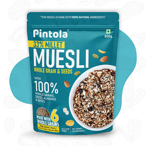 Start your mornings with Pintola MUESLI and experience the goodness of whole grains, seeds, and nuts, combined in a delectable and nourishing blend. Make a conscious choice towards a healthier lifestyle without compromising on taste or quality.