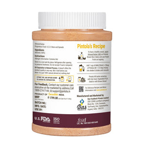 All PINTOLA Products are made up of the finest grade, fresh and nutritious ingredients from an ISO 22000 Certified and FSSAI approved Factory. We manufacture India's favorite Nut Butters daily so that you get the Freshest Product every time you buy one. It is suitable for all age groups. Ideal for Gym, Fitness Enthusiasts, Athletes & all Foodies!
